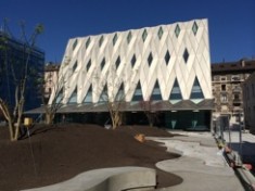 Le nouveau musée forme avec les deux écoles du début du siècle une place qui est à la fois un jardin public pour les habitants du quartier et l’esplanade d’entrée du musée. Depuis un foyer généreux, ouvert et orienté sur cette esplanade-jardin, on accède au grand escalier descendant vers les étages inférieurs où se trouvent différents espaces publiques ainsi que ceux dédiés aux expositions. Ceux-ci sont réunis dans une halle d’un seul tenant, sans aucuns piliers, d’une surface de 2'000 m2 et dont la hauteur peut aller jusqu’à 10m. Elle est conçue comme une boîte noire permettant ainsi une multitude de scénarios d’exposition différents.